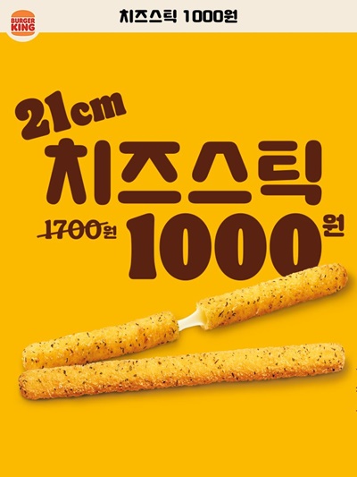 그리고 21센티미터나 하는 치즈스틱이 1000원입니다. 콤보로 감튀 없이 버거 주문하면서 치즈스틱 따로 하나 더 추가하는 것도 나쁘지 않아 보입니다.